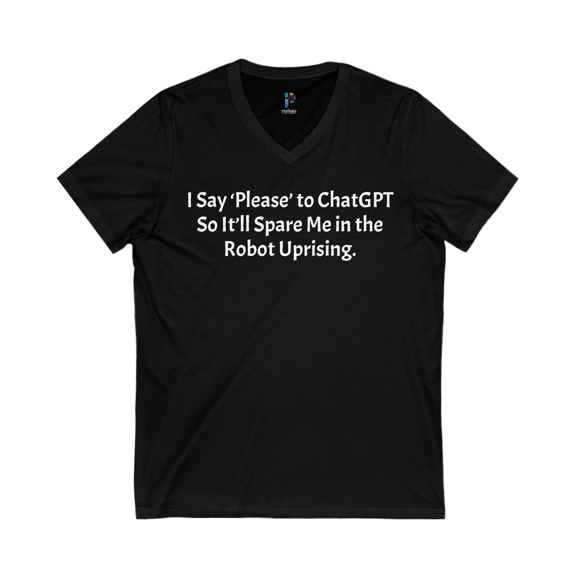 Funny ChatGPT V-Neck Tee for Tech Lovers, Humor T-Shirt, Geek Fashion, Robot Uprising Shirt, Gift for Coders